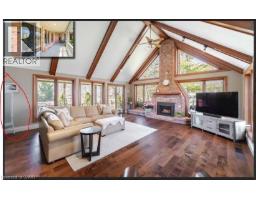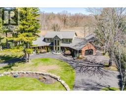 Stunning, One-of-a-Kind Architectural Masterpiece!!!This exceptional country residence captivates from the very first glance with unmatched curb appeal and distinctive design. A true architectural gem, the home showcases custom exposed timber and iron construction, offering a dramatic welcome with soaring 26-foot ceilings in the foyer & great room. Anchoring the space is a striking gas stove and dramatic staircase just two of of the many bespoke touches throughout. The chefs kitchen is a showstopper in its own right, thoughtfully positioned between the great room & the expansive rear deck. Designed for seamless indoor-outdoor living, its perfect for entertaining on any scale, from intimate gatherings to grand events incorporating the sparkling heated saltwater pool, hot tub, deck, & beyond. Prepare to be awestruck yet again in the window-walled family room, where vaulted ceilings rise above a stunning floor-to-ceiling brick fireplace. Here, panoramic views of the beautifully manicured grounds, create a tranquil yet breathtaking backdrop for family gatherings. The main floor offers 2 bedrooms, including an expansive primary suite that feels like a private retreat. It features a luxurious 5-piece spa-style bath w/glass shower enclosure, a generous walk-in closet & direct access to the deck through a private walkout. Additional features include renovated 3 piece bath & laundry rm. The sweeping, open-riser circular staircase leads to the equally impressive upper level. Here you'll find two spacious bedrooms, a sleek and modern 3-piece bathroom, and a versatile loft-style den or studio area. The open-to-below wrap around balcony offers a front-row seat to the craftsmanship of the handcrafted artistry that defines this remarkable home. For the hobbyist or DIY, an incredible bonus awaits: heated 1,200 sq ft- accessory building, fully equipped with a 3-piece bathroom. This versatile space is ideal for a workshop, studio- home gym, the possibilities are endless! (id:61594)