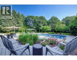 Relocate to desirable Colonial Acres in northeast Waterloo. Fantastic location minutes to internationally known Universities & College plus the future Waterloo Regional Health Network Hospital in the west end. Mature .620 acre lot on municipal water & sewer backing on heavily treed Anndale Park. This low traffic court presents architecturally custom homes offering privacy and a quiet atmosphere. Prime time is now to enjoy the sparkling inground pool, fresh decking, oversized gazebo and fenced yard space for children & pets to play. Inside, the front northeast to rear southern exposures fill the house daily with natural light through multiple windows. The whole main rear of the house is wall to wall windows beckoning you to enjoy the scenic views of the yard. The upper level offers 4 bedrooms, two with personal ensuite bathrooms plus a guest bathroom. Heated tile flooring, walk-in shower & freestanding tub in the upgraded primary 5 pc ensuite will be a popular spot for relaxation. The hub of the home is the modern kitchen with 6' x 5' centre island, quartz counters, two coolers plus a walk-in pantry. Don't miss the main floor laundry, 3 pc bathroom and mudroom closet ready for a busy family coming in from the garage. Two wood burning fireplaces anchor both the family room & main floor office. Celebrations can be held in the formal living & dining rooms. The finished basement is ready for gym workouts, and having friends over to watch movies with screen & projector already in place. Plenty of storage space plus a direct secondary access stairwell from the basement to the oversized extra deep double garage. Looking for a green feature? The solar panels on the roof offer a yearly income. Experience the close amenities of Conestoga Mall with ION light rail station, easy Expressway access, Grey Silo Golf Course, RIM Park Recreational Centre, East Branch Library, various walking trails & more all ready to explore. Make your next move to Waterloo! (id:61594)