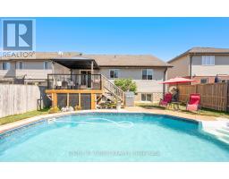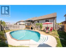 Welcome to 587 Spitfire Street in Woodstock. Beautiful raised bungalow in a very desirable location for schools, seniors and families. Enter into the spacious foyer leading up oak steps to the main living room. Just beyond the living room is a well-appointed kitchen and attached dining room with patio doors opening onto the raised deck with glass railing. Also on this level you'll find the master bedroom, second bedroom and 4-piece bath. The lower level is completely finished and offers large windows with lots of natural light. The family room offers plenty of space for the whole family and features a beautiful corner gas fireplace. Also on the lower level is a large bedroom, 3-piece bath and laundry. The backyard is fully fenced and features an in-ground leisure pool installed in the Summer of 2018. The leisure pool is 4feet deep across great for everyone of all ages. complete with concrete surround and gas heater. Walk out to a gorgeous wood deck from the kitchen covered by a gazebo and over look the pool during your summer days. (id:61594)