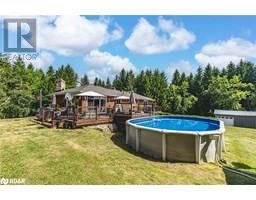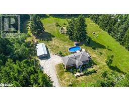 ESCAPE TO THE COUNTRY ON 13 PRIVATE ACRES WITH OVER 2,400 SQ FT OF UPGRADED LIVING SPACE, TRAILS, PASTURES, A DETACHED GARAGE & ENDLESS HOBBY FARM POTENTIAL! Experience the ultimate in privacy, space, and natural beauty with this incredible 13-acre retreat, tucked away in a peaceful community just minutes from Elmvale and Highway 400. Surrounded by year-round recreational hotspots including Georgian Bay, Wasaga Beach, Copeland Forest, Snow Valley Ski Resort, and top golf destinations, this property offers endless opportunities to explore and unwind. The beautifully landscaped grounds feature mature trees, open fields, forested walking trails, vibrant gardens including a dedicated vegetable garden with a potting shed, and three fully contained pastures with incredible equestrian potential. Entertain outdoors on the expansive backyard deck with an above-ground chlorinated pool with a brand new liner and a fully equipped pool shed, or unwind on the updated front porch. Inside, enjoy bright open-concept living with vaulted ceilings, oversized windows, multiple walkouts to the deck, and a cozy great room with a wood-burning fireplace. The upgraded kitchen impresses with granite countertops, custom cabinetry, and a classic subway tile backsplash. Two spacious main floor bedrooms, including one with a walkout to the deck, are complemented by a beautifully updated 5-piece bath with modern finishes. The finished basement with a separate entrance offers fantastic in-law suite potential, complete with a large rec room, propane fireplace, kitchenette, two additional bedrooms with large egress windows, and a stylishly renovated bathroom. With a detached double garage with hydro, fresh paint on the main floor, and recent fireplace and chimney updates, this move-in ready #HomeSweetCountryHome is the total lifestyle package! (id:61594)