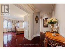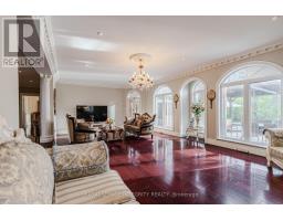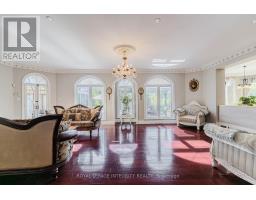 A Masterpiece in Rideau Forest! This exquisite mansion blends the timeless elegance of a French château with contemporary luxury. Rich Jatoba cherry hardwood flows seamlessly across the main level and up the custom staircase, setting the stage for the dramatic two-story foyer. Every detail reflects superior craftsmanship, from Nevado plaster crown moldings and columns to custom draperies and curated light fixtures. At the heart of the home lies a chef-inspired kitchen, complete with premium appliances, custom cabinetry, and an expansive island. Flooded with natural light, the home offers serene, unobstructed views from every window. Relax in the panoramic all-season solarium with heated floors, or step out onto the private balcony off the primary retreat to immerse yourself in nature. The thoughtful layout includes a main-floor library, guest suite with a full ensuite, a separate entrance with mudroom, and a sprawling primary sanctuary. Each bedroom enjoys the privacy of its own ensuite bath. Outdoors, a professionally designed landscape and 2 luxurious pools create a resort-like oasis, perfect for private enjoyment or elegant entertaining. More than a home, this is a peerless showpiece offering the ultimate in family living and refined hospitality. (id:61594)