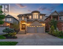 Welcome to 59 Newcastle Drive, Kitchener, a beautifully maintained ravine-backed home offering over 2,900 sq. ft. above grade plus a finished walkout basement. Backing onto peaceful greenspace with no rear neighbours, this property offers a rare blend of privacy, space, and natural surroundings. Exceptional curb appeal, mature landscaping, and parking for 5 vehicles (2 car garage and 3-car driveway) create a strong first impression. Inside, the main level features 9-foot ceilings, hardwood flooring, and extensive pot lighting throughout. The living room is highlighted by a gas fireplace and a striking wall of windows overlooking the ravine. The kitchen is well-appointed with granite countertops, built-in stainless steel appliances, a gas stove, and a large island, flowing seamlessly into the dining and breakfast areas. A main-floor laundry room with garage access and a powder room complete this level. Upstairs, a spacious family room offers flexible use and can easily convert to a fourth bedroom, while a separate den provides ideal office space. Three generously sized bedrooms include a primary suite with walk-in closet, private balcony, and ensuite featuring a jacuzzi tub and separate shower. A 4-piece bathroom serves the additional bedrooms. The fully finished walkout basement with 9-foot ceilings and heated floors expands the living space with a large recreation area, wet bar, and spa-like bathroom with private sauna. Step outside to an elevated deck with sweeping ravine views and a covered patio below, offering a peaceful, private outdoor setting. Additional highlights include integrated in-ceiling speakers, security camera pre-wiring, updated kitchen appliances, new AC (2025), and new garage doors. Ideally located near top-rated schools, parks, trails, shopping, transit and major highways. A rare ravine property at this price is hard to find. Book your private showing today and make this your Forever Home! (id:61594)