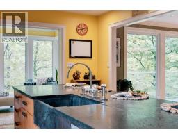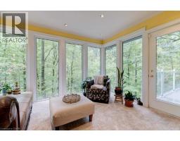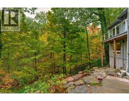 Welcome to this hidden sanctuary with breathtaking woodland views from every room in this home. This contemporary home is set on nearly 6 acres of forestry & completely immersed in nature's beautiful surroundings with secret waterfalls, a majestic stream & vibrant wildlife that animates the wilderness. Step inside and be greeted by an alluring & grand foyer with vaulted ceilings. The main level starts off with a spacious family room with a 3-way stone wood burning fireplace, Brazilian hardwood floors, & wall to wall windows to take in the incredible views. Next is the dream kitchen you've been waiting for that combines function with the perfect entertaining set up. This culinary haven features soapstone countertops, custom hardware, undermount lighting, a wet bar sink, a 10ft island, & top of the line appliances such as Thermador gas stove, steam oven & more. Adjacent to the kitchen is a cozy glassed-in sunroom with panoramic views of the lush forest & a balcony that stretches all along the back exterior of the home. The main level also offers a spa-like bathroom with a jetted bathtub and an infrared heat lamp to keep you warm and toasty. Beside is your primary bedroom with a walk-out to the balcony and a 12ft x 4ft closet with a window. Downstairs, find a rec room with another wood-burning fireplace and a full wall of windows for another spectacular view. 2 additional bedrooms, a 3-piece bathroom, a laundry room, & a one-of-a-kind office space with a walk-out to the backyard complete this level. The backyard includes a pizza oven and a hot tub, providing you with a space that boasts the utmost relaxation. This retreat is complete with an eight-car driveway, an EV charger and a one-car garage with inside entry. Located in one of Grimsby's most desirable areas, this remarkable property not only backs onto the Bruce trail & Grimsby Bench Nature Preserve but offers such a short distance to restaurants, highways & all other amenities. Don’t be TOO LATE*! *REG TM. RSA. (id:61594)