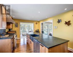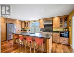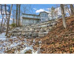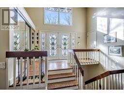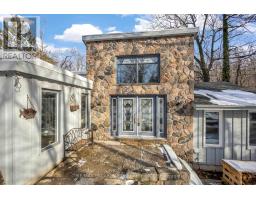 Tucked into the forest and backing directly onto the Bruce Trail and Grimsby Bench Nature Preserve, this ARCHITECTURALLY DISTINCTIVE retreat offers a RARE OPPORTUNITY to live completely immersed in nature - without sacrificing proximity to town, restaurants, and highway access. Designed for those who value COMPLETE PRIVACY, tranquility, and character over cookie-cutter living, every window frames a different woodland view, creating a true storybook setting throughout. A vaulted foyer welcomes you into a dramatic main living space featuring a striking three-way stone wood-burning fireplace, Brazilian hardwood floors, and walls of windows that blur the line between indoors and out. The thoughtfully designed kitchen balances everyday function with elevated entertaining, offering soapstone countertops, a 10-foot island with prep sink, custom detailing, and premium appliances including a Thermador gas range and steam oven, flowing seamlessly into a glass-enclosed sunroom and expansive balcony that stretches along the back of the home among the treetops. The upper level serves as a private primary retreat with balcony access, an oversized windowed dressing closet, and a spa-inspired bath featuring a jetted tub and infrared heat lamp for year-round comfort. The lower level provides exceptional flexibility with a spacious recreation room anchored by a second wood-burning fireplace, two additional bedrooms, a full bath, and a dedicated office with walk-out access ideal for remote work or guest accommodation. Outdoors, terraced stone landscaping, a pizza oven, hot tub, and direct forest access create a secluded escape, while an eight-car driveway and garage with inside entry add everyday convenience. This ONE-OF-A-KIND property is perfectly suited for buyers seeking a refined woodland lifestyle in one of Grimsby's most desirable locations. RSA (id:61594)