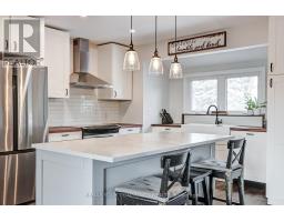 Nestled on a quiet cul-de-sac with direct access to the beautiful Nokidaa Trail, this fully refinished and updated home sits on a private fenced 140' lot and offers flexible living for families of all sizes. The bright main level features an open-concept kitchen, dining, and living area designed for comfortable everyday living and effortless entertaining. The renovated kitchen showcases stainless steel appliances, quartz and butcher block counters, and a large centre island with breakfast bar. An oversized picture window fills the space with natural light, while built-in bookshelves and a cozy gas fireplace add warmth and character. The dining area opens through garden doors to a newly constructed deck, perfect for morning coffee or summer evenings overlooking the spacious backyard. Three bedrooms are located on the main level, including a primary suite with wall-to-wall closets and private access to the deck. The fully above-grade entry level adds exceptional versatility with two additional bedrooms, a 4-piece bath, and a spacious great room with kitchen facilities, ideal for extended family, guests, or potential in-law accommodation. Move-in ready and conveniently located close to schools, shopping, transportation, and highway access. Enjoy the perfect balance of privacy, nature, and everyday convenience. View the virtual tour for photos and floor plans. (id:61594)