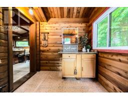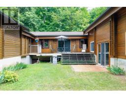 This cozy, Western Red cedar, double tongue and groove U-shaped log bungalow is nestled on a 14-acre hardwood treed lot. Set back from the road, it is a gorgeous, forested, peaceful spot, surrounded by nature. Bounded by a polo club, farms and 300 meters of the Nottawasaga River, it has walking trails, riding trails, and woods. The 2300 sq ft main floor is a curated blend of country charm and modern conveniences with 2 main floor bedrooms and an office that can easily be converted into a 3rd. The main floor boasts beamed cathedral ceilings, and two wings one with an indoor pool, and the other with a high-ceiling indoor squash/pickleball/basketball half court. Spectators observe the fun from a main floor window, and look out on the indoor pool from the dining room. The pool has a separate shower and change room with basement access. An additional 1500 sq ft in the fully finished basement offers excellent storage, exercise, and entertainment space. A large separate double car (or more) garage/utility shed provides ample space for tools, work benches, and lawn tractors/snowblowers. The birdfeeder hosts all kinds of birds near the kitchen window year-round. The QHT Biasi high efficiency wood fueled boiler uses lot harvested wood to heat your home. Close proximity to Barrie, Thornton and Alliston and the #400 highway provides access to civilization and a curated retreat all in one. You can have a bonfire in the fire pit or a quiet walk in the country and still get to urban activity if that is your preference. Come take a look. (id:61594)