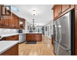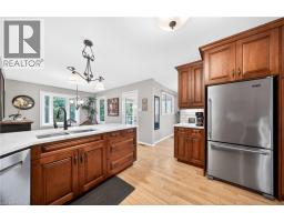 Beautiful Wrighthaven built bungalow in a very desirable Fergus neighbourhood, a great location close to Downtown Fergus, local schools, Sportsplex and shopping etc. This immaculate bungalow has a generous size foyer, beautiful maple hardwood flooring throughout the main floor, a nice bright living room with vaulted ceiling, a formal dining area, the kitchen has been beautifully renovated with custom cabinetry, quartz counter tops, ceramic tile backsplash and Maytag stainless appliances, a good sized dinette area and a 75 sq ft sunroom with patio doors leading out to a deck overlooking the nicely landscaped backyard. The main floor also has 2 good sized bedrooms, the primary bedroom has a cheater style 4piece renovated bathroom, the second bedroom comes with a Murphy bed, a 2 piece en-suite as well as in-suite laundry. Head down to the finished walkout basement and you will find the 2 bedroom in-law suite with a 4 piece bathroom, very spacious open concept living area, a well equipped kitchen, dining area, living room with gas fireplace, storage and laundry room for this unit, and a walkout leading to a nice interlocking stone patio. This is a perfect home for anybody looking for additional accommodation with a separate entrance for family members, or making the suite into a legal basement unit subject to permits for additional income, or even additional living space for the larger family. (id:61594)
