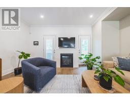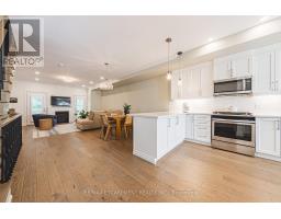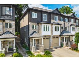 Stunning end unit town located in desirable sought after Ancaster village, walkable to coffee shops, fabulous dining, french bakery, summer farmers market, memorial arts centre, trails, schools, grocery and more! Meticulously maintained in like new condition, freshly painted with California shutters throughout, this home is turn key. The main level welcomes you from the covered porch into a flex space, currently used as home gym with double door walk out to exposed aggregate patio. Inside entry from garage. Convenient 2 piece bath with quartz counter. On the main level, you will find an elegant and exceptionally spacious living room/kitchen with 9 ft ceilings, crown moulding, hardwood floors. Living room is centred around gas fireplace with double door access to deck with bbq gas line and facing ravine. Dining area and kitchen peninsula offers ample room for entertaining. Crisp white kitchen with quartz counters, premium hardware, pearl finish textured tile backsplash, stainless steel appliances including gas stove, ample kitchen cabinet space with pantry. Main level 2 piece bath with quartz counter vanity and hexagon tile floor. Upstairs you will find three bedrooms, laundry, 2 full baths. Primary suite with walk in closet, ensuite with walk in glass shower, two large windows facing ravine. Additional 4 piece bath with quartz counter vanity and tub. No rental Items! Enjoy the Ancaster lifestyle with this beautiful move in ready home. (id:61594)