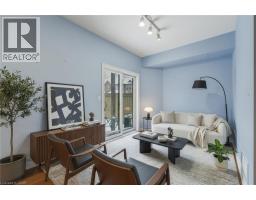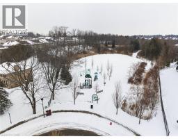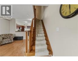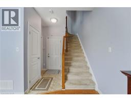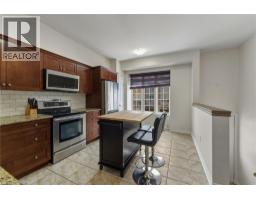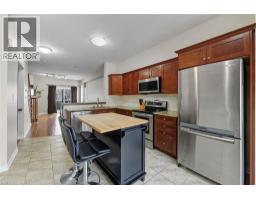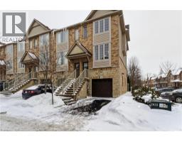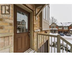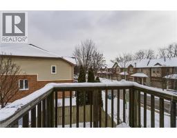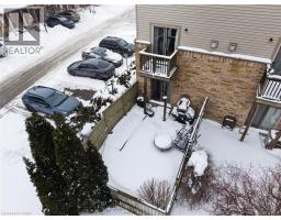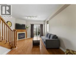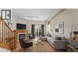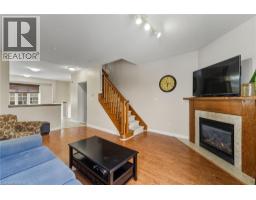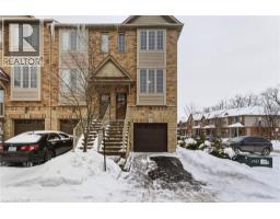 Situated in a quiet Ancaster neighbourhood, this well maintained corner unit townhouse offers bright, comfortable living across three finished levels. The open concept main floor includes a gas fireplace and access to a private balcony. The eat in kitchen is finished with granite countertops, maple cabinetry, stainless steel appliances, a pantry, and breakfast bar. Upstairs are two spacious bedrooms, a full 4 piece bath, and convenient second floor laundry. The finished lower level provides a walkout to a private backyard and a flexible space ideal for a rec room, home office, or additional bedroom. An attached garage, nearby visitor parking, low road fees, and easy access to the 403 complete the home. (id:61594)