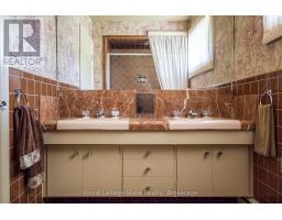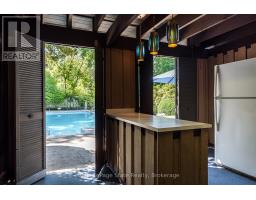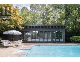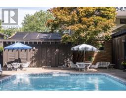 Magnificent Mid-Century Modern on quiet court near Cootes. Cherished by the original owners for 69 years, this one-of-a-kind two-storey home was thoughtfully designed for entertaining and family living. Offering over 3,657 sqft the home features an impressive 20x46 ft addition with a dining room that seats 14 guests and a spectacular family room with beamed ceilings surrounded by floor-to-ceiling windows overlooking the pool and private garden oasis, truly an entertainer's dream. Built in 1956 the home's design reflects timeless quality with high-end finishes and distinctive décor. Enter the foyer with slate floors and into the sunken living room with stone fireplace, and up to a dinette with custom built-in cabinets and stunning marble countertop. The retro kitchen features quartz counters, double ovens, cooktop, and built-in banquette that leads to a massive games room, which was converted from a double car garage, with huge pool table for family fun of all ages. Step out to the pool cabana with convenient kitchenette, 2 change rooms, 3-pc bath, and out to the lush private garden oasis with huge 20X40 ft pool, heated through rooftop solar panels, multiple seating areas and custom designed fence with cool coloured inserts. The main floor also includes a private office and 2-pc bath with marble counters, and on the second floor you will find 4 spacious bedrooms, including the primary with 3-pc ensuite and walk out to a rooftop terrace, plus a 4-pc retro family bath, and walk-in linen closet. The finished basement offers even more living space with an office, recreation room with wet bar, 2-pc bath, laundry, and ample storage. Perfectly located just steps to Cootes Paradise, Princess Point, Waterfront Trail, Churchill Park, schools and Westdale Village, shops, restaurants, amenities, and theatre. Minutes to McMaster University & Hospital, Go-transit & highway access, make this a super convenient Westdale North location to call home. RSA (id:61594)