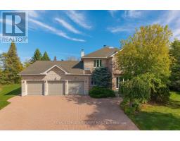 Offering nearly 7,000 sq. ft. of interior living space, this gated estate delivers a scale rarely seen in Ottawa under $2M. Nestled on two manicured acres within an exclusive enclave of just 22 upscale homes, it combines privacy, space, and luxury while being a short walk to restaurants, shopping, and Kanata's tech sector. With 4,453 sq. ft. above grade, the home impresses from the moment you step into the soaring foyer. The main level features a dramatic 38' 5" x 20'6" family room with vaulted 14 ceilings and a two-sided stone fireplace, seamlessly connected to a 24' x 22' sunlit kitchen finished in granite and silver travertine with walk-in pantry, wet bar, breakfast nook and expansive windows. Entertain for 100+ guests with ease. Formal living and dining rooms, a large office with French doors, and a 36' mudroom/laundry room with both upper and lower cabinetry add both elegance and function. The lower level offers a 1,250 sq. ft. finished "in-law suite" with slate floors, marble bath, French doors, kitchenette, and private garage entry, perfect for multi-generational living. An additional 1,200 sq. ft. of unfinished lower level space allows endless potential for a wine cellar, spa, gym, or storage. Finishes include crema marble, travertine, quartz, granite, black slate, and nearly 2,000 sq. ft. of Brazilian Cherry hardwood, known for its hardness and durability. Designed for entertaining, the free-flowing layout creates a 69' line of sight across the main floor, blending semi-open concept with traditional defined formal spaces. Upstairs, discover 4 bedrooms, including a 24' x 15' primary suite with a renovated marble ensuite, alongside a second full bath in quartz and travertine. Outdoors, a new 24' x 20' deck extends the living space, overlooking private grounds framed by mature trees and no rear neighbours. From its sheer scale and refined craftsmanship to its walkable location and private setting, this home is without equal in today's market. (id:61594)