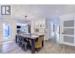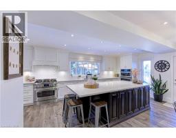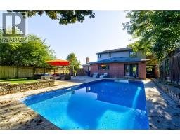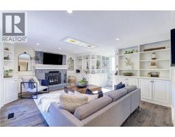 Welcome to 6 Mays Crescent, a rare find on one of Waterdown's most sought-after crescents. Just steps to downtown shops, cafés, restaurants, parks, and trails, this home combines a prime location with extensive updates inside and out. The bright, open layout features a chef's kitchen with SS gas stove, double ovens, fridge, built-in dishwasher, custom cabinetry, abundant prep space, and two walkouts to the backyard. The main level also offers a dedicated office, an elegant dining area, a family room with custom built-ins, a wood-burning fireplace and the 3rd main level walk out. A laundry-powder room and front living room with a reading nook, and pool views complete the main floor. The second lvl offers a great layout with three bedrooms and two full baths, including a private primary ensuite. The finished basement (2024) with side entrance includes a Dolby Atmos home theatre, hardwired indoor/outdoor speakers, PAX storage, gym space, a storage room and 2 pc bath. Recent improvements include new windows and doors (2024), spray-foamed garage ceiling, freshly painted siding/soffits, and chimney brick rebuild with metal insert. The 59x150 ft landscaped lot is a showstopper with a pergola-covered dining area, natural gas hook up for BBQ, saltwater pool with safety cover, large grassy play space with tree house, and smart Rainbird irrigation system with Rachio controller. Whether you're hosting friends, enjoying a movie in your state-of-the-art basement, or strolling to the local bakery, 6 Mays Crescent is the one you've been waiting for. (id:61594)