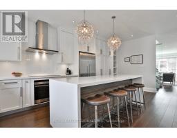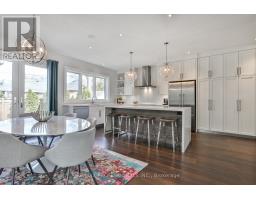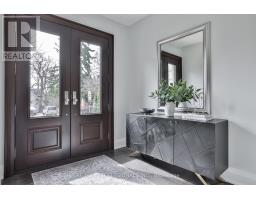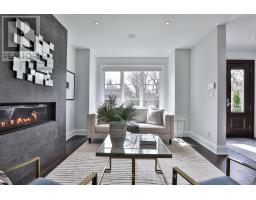 Nestled in the heart of Thompson Orchard Park, this sophisticated and stylish residence offers a seamless blend of contemporary design and timeless elegance. Step inside to a bright and welcoming foyer that sets the tone for the thoughtfully designed interior. The formal living room features a sleek gas fireplace, creating an inviting space for relaxing or entertaining. At the heart of the home, a chef's kitchen impresses with top-end integrated stainless steel appliances, a waterfall-edge centre island with breakfast bar, and an open flow to the dining area. French doors walk out to a private, landscaped yard complete with a deck and stone patio - perfect for outdoor gatherings. Adjacent to the kitchen, a sky-lit family room adds warmth and natural light, offering a comfortable everyday living space. Upstairs, the second level is anchored by a luxurious primary suite featuring dual double closets, a custom walk-in closet with organizers, and a sky-lit 5-piece ensuite bath. Two additional bedrooms and a beautifully finished 4-piece bath complete this level. The fully finished basement extends the living space with a cozy rec room and gas fireplace, a fourth bedroom, a stylish 3-piece bath, and a well-appointed laundry room. Ideally located just 5 minutes to the subway, Kingsway shops, cafes, and fine dining. Walk to top-rated schools and scenic parks, with an easy commute to downtown and the airports. (id:61594)