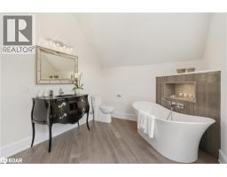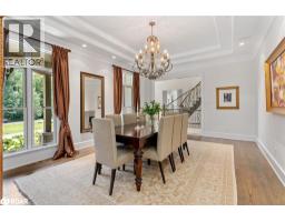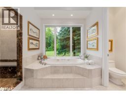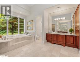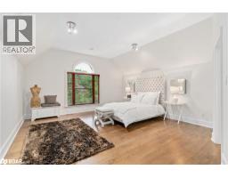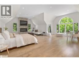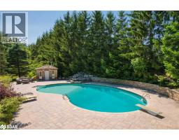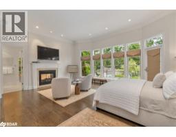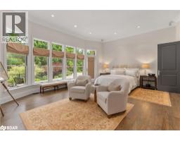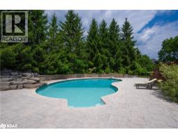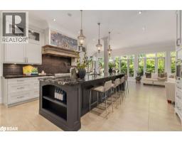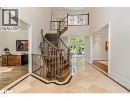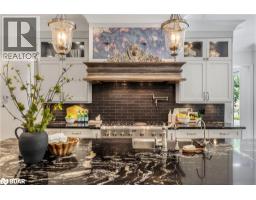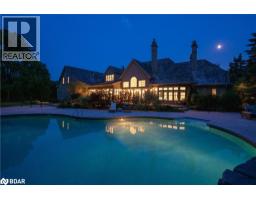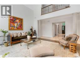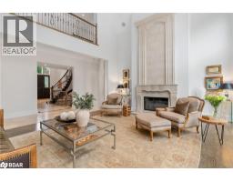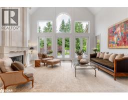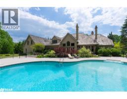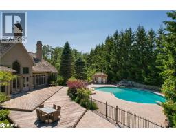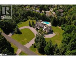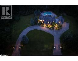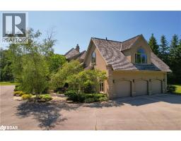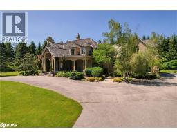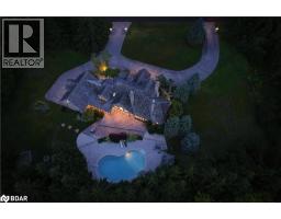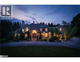 Welcome to one of Midhurst’s most prestigious addresses—Midves Court. This custom-built estate sits on nearly 2 acres of private, landscaped grounds with a circular driveway, triple garage, and over 8000 sq ft of luxurious living space. Designed with elegance and function in mind, the home features 5 bedrooms, 6 bathrooms, and high-end finishes throughout. The main floor includes a spacious great room with soaring 20+ ft vaulted ceilings and a grand wood-burning fireplace—one of five throughout the home. The chef’s kitchen boasts Thermador appliances, granite counters, and an oversized island, all open to a bright family room with full-height windows. A formal dining room, private office with gas fireplace, and stunning entryway with curved staircase and additional second staircase complete the main level. The main-floor primary suite offers comfort and accessibility, with large windows, a walk-in closet with custom millwork, 5-pc ensuite with jacuzzi, and direct walkout to the backyard and pool. Upstairs are 3 spacious bedrooms, each with ensuite bathrooms and large closets, including a second primary suite with dual closets and a fully renovated spa bath. A rare upper-level lounge provides a perfect hangout for kids or guests. Enjoy indoor-outdoor living with approx.1500 sq ft of decking, multiple seating areas, BBQ gas line, and a resort-style saltwater pool with waterfall, retaining wall, and pool house. The yard includes a firepit, expansive lawn, and space for a future tennis or sports court—framed by mature trees and gardens for total privacy. The finished lower level impresses with 12-ft ceilings, a games area, gym with mirror and padded flooring, full bath, and abundant storage. Additional features include fresh paint throughout, hardwood upstairs, epoxy garage floors, UV and reverse osmosis water filtration, Sonos sound, and a full security system. A rare offering in the heart of Midhurst, minutes to Barrie, hwy 400, top rated schools and all amenities. (id:61594)