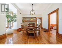 Welcome to 6 Queen Street! This beautiful, Victorian-inspired stone home is filled with charm & comfort, perfectly situated in the heart of Georgetown & just minutes from the Georgetown GO. The bright front sunroom, wrapped in windows, leads into a warm & inviting foyer featuring hardwood flooring, high baseboards, deep-set windows, and 10-foot ceilings that span the main level. The living room boasts hardwood floors, a bay window overlooking the front yard, and one additional large window flooding the room with natural light. The dining room offers a cozy wood-burning fireplace, creating the perfect ambiance for gathering. A main floor office with wood-panel wainscoting provides an ideal work-from-home space & can easily double as a main floor bedroom. A spacious addition expands the living area, showcasing an updated open-concept kitchen with granite counters, shaker cabinets, a double sink, built-in microwave, wine & beverage fridge & a window overlooking the side yard. The bright and airy breakfast area opens into the large family room, where a picture window frames views of the backyard & includes a convenient walkout to the side yard. A charming main floor powder room is an added bonus! Upstairs are two bright bedrooms with the primary featuring hardwood floors & a walk-in closet. The second bedroom also includes hardwood flooring and a beautiful bay window overlooking the front yard. The updated five-piece family bath offers a free-standing soaker tub, glass-enclosed walk-in shower, double sink & built-in vanity. The lower level provides excellent additional space for family or guests, complete with a rec room, bonus room/den & secondary kitchen. This basement also includes a brand-new three-piece bathroom with glass shower, laundry area with cabinetry & a folding counter. Outside, the large, fenced yard features an interlock patio, a shed, & plenty of room to play. Enjoy being a short walk to parks, schools, shops, & Georgetown's charming downtown. (id:61594)