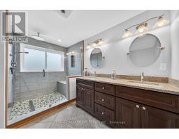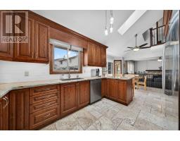 Outstanding home in a choice neighborhood set in a convenient location close to all amenities, park, highway access, schools and public transportation. This is a beautiful home starting with it's attractive brick exterior, aggregate cement !driveway for 4 cars and extensive landscaping! Access to the fully fenced backyard is accommodated with walkways on both sides of the home which features a quality above ground pool with a deck and a quality cover for off season. This is a turn key quality home featuring Travertine tile flooring in the spacious kitchen with granite counter tops and upscale appliances. Attractive wood flooring is present extensively on 'the main and bedroom floor levels. Other features to note are the skylights in the kitchen with vaulted ceiling, the curved staircase, balconies overlooking the entrance and kitchen, and laundry located on the main level. beautiful ensuite bathroom in the primary bedroom and high ceilings in the mostly finished basement level. Viewing the video will give one an impressive introduction! (id:61594)