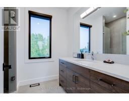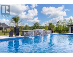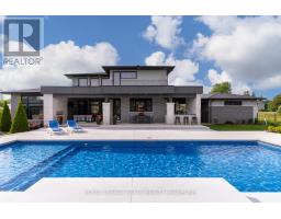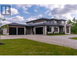 Discover unparalleled luxury in this custom-built modern masterpiece on a sprawling 1.6-acre estate in Greensville, one of Dundas' most exclusive neighbourhoods. Enjoy the tranquility of a private country retreat just minutes from downtown Dundas and a short drive to Ancaster, Burlington, and McMaster. This stunning home offers over 6,000 sqft of exquisitely designed living space with 4+1 bedrooms and 7 bathrooms. From the striking architecture and custom millwork to the warm ambiance created by designer fixtures, soaring ceilings, 4-foot porcelain tiles, and -inch engineered hardwood, every detail will impress. The dramatic 19-foot great room features floor-to-ceiling black frame windows with automated blinds and a sleek gas fireplace wrapped in 10-foot porcelain slabs. The chef's kitchen is a showstopper, equipped with top-tier appliances, quartz countertops, a waterfall island, built-in espresso bar, and a hidden walk-in pantry for a clean, streamlined look. The main-floor primary suite offers a spa-like retreat with a five-piece ensuite including heated floors, glass shower, freestanding tub, double vanity, and an oversized walk-in dressing room with custom organizers. Upstairs, three bedrooms each have unique ensuite baths and 9-foot ceilings, ensuring privacy and comfort. The finished lower level expands your living space with a full secondary kitchen, recreation room, gym or guest bedroom, full bathroom, and a soundproof home theatre-ideal for entertaining or multi-generational living. Car enthusiasts will value the 5-car garages with a car lift, alarm system, and heated bay for year-round comfort. Outside, relax in your resort-style oasis with a heated saltwater pool, outdoor family room & kitchen, and full bathroom. A custom garage-style shed and pool house enhance the property's sleek design. Additional features include a whole-home 20KW generator, Control4 smart home automation, and electric car rough-in. This estate is more than a home-it's a lifestyle! (id:61594)