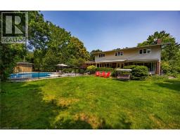 This beautifully maintained 5-bedroom, 3-bathroom, 2,600+ sq. ft. home located in Simcoe’s most exclusive, quietest and mature neighbourhood. Surrounded by tree-lined streets and backing onto the Norfolk Golf & Country Club, this solid brick 2- storey home offers the perfect blend of privacy, comfort, and convenience. Step inside to a spacious main floor featuring gleaming hardwood, a sun-filled living room with wall-to-wall windows, and a floor-to-ceiling natural stone wood-burning fireplace. The gourmet kitchen is a chef’s dream, complete with granite counters, a Viking gas stove, high-end appliances, Winger cabinetry, a pantry, and views of the backyard and pool. A 2-piece bath, mudroom/laundry with side entrance, and direct access to the backyard complete the main level. Upstairs, the primary bedroom includes a 4-piece ensuite, while four additional bedrooms share a large 4-piece bath with granite counters and double sinks—perfect for families or guests. The lower level offers a recroom with custom built-in shelving and a spacious unfinished area ideal for storage. The backyard is your private retreat: a fully fenced, heated kidney-shaped pool, expansive flagstone patio, pool house, retractable awning with LED lighting, built-in sound system, and lush landscaping. Ornamental trees, perimeter lighting, and a driveway with parking for 10 add to the curb appeal. Located just minutes from downtown Simcoe’s restaurants, shopping, schools, and hospital—and only a short drive to Norfolk County’s best beaches, trails, wineries, golf courses, and marinas—this is more than a home; it’s a lifestyle opportunity in the heart of Norfolk County. Check out the virtual tour and book your private showing today. (id:61594)