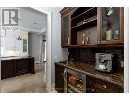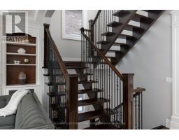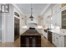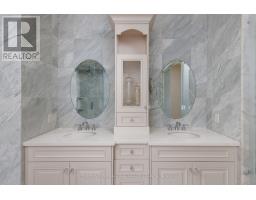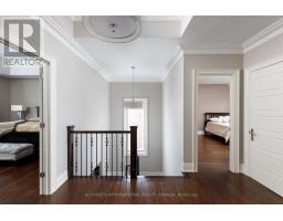 Exquisitely located in the heart of Old Maple, steps from the state-of-the-art Cortellucci Vaughan Hospital, this bespoke custom residence defines luxury living with effortless access to major highways, elite schools, Vaughan Mills, parks, and Toronto. Spanning approximately 5,400 sq ft of living space, the home's timeless exterior features Belden reclaimed brick, natural stone accents, and elegant architectural detailing. Professionally landscaped, fully fenced grounds include mature trees, interlock walkways, and an expansive covered loggia with built-in speakers-perfect for sophisticated entertaining. A matching designer shed and three-car tandem garage complete the exterior. Inside, an 8' custom arched mahogany door opens to soaring 10' ceilings, marble flooring, and hand-scraped oak throughout the main level. Formal living and dining rooms, a butler's servery with wine fridge, and a designer mudroom offer both elegance and functionality. The chef's kitchen boasts marble floors, coffered ceiling, ceiling-height cabinetry, Sub-Zero and Wolf appliances, oversized granite island, quartz surfaces, and sliding doors to the loggia. The family room features a gas fireplace, cultured stone feature wall, and custom built-ins. Upstairs, the lavish primary retreat offers a coffered ceiling, spa-inspired six-piece marble ensuite, and expansive his-and-hers walk-in closets. Three additional bedrooms feature private ensuites and walk-in closets, while a convenient laundry room completes the level. The lower level includes 8.5' ceilings, heated flooring, built-in speakers, a walk-up, and roughed-in fireplace, providing exceptional versatility. (id:61594)