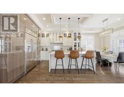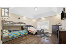 Welcome to a statement of refined luxury in the prestigious Riverwood community of Halton Hills. Set on a rare, premium corner lot, this exceptional 2018-built detached residence offers 4+1 bedrooms and 5 bathrooms, thoughtfully designed for elevated living with uncompromising attention to detail. The home's stone and brick façade, paired with professionally installed interlocking in the front and backyard, delivers timeless curb appeal with effortless maintenance. Step inside to an atmosphere of sophistication highlighted by 10-ft custom coffered ceilings, rich premium hardwood flooring, designer wainscoting, and pot lights throughout. The expansive, sun-filled layout features separate living and family rooms with a defined dining space, creating the perfect balance between elegant entertaining and everyday comfort. The heart of the home is a chef-inspired gourmet kitchen, showcasing high-end JennAir stainless steel appliances, custom Cameo cabinetry, Caesarstone countertops, and a striking oversized island-designed for both culinary excellence and upscale hosting. A custom-stained staircase seamlessly matches the hand-scraped engineered hardwood flooring, leading to the upper level where luxury continues. Upstairs, discover four generously sized bedrooms, including a primary suite retreat with soaring ceilings, his-and-her closets, and a spa-like 5-piece ensuite. Each additional bedroom features a private or semi-private bathroom, offering hotel-style comfort and privacy for family and guests. The fully finished basement extends the home's luxurious living space with an additional bedroom, a large recreation area, and an open-concept exercise zone-ideal for guests or a home wellness retreat. Located near parks, trails, top-rated schools, and community centers. This is a rare luxury lifestyle opportunity in Georgetown's most sought-after neighborhood. Once you experience it, there's no comparison (id:61594)
