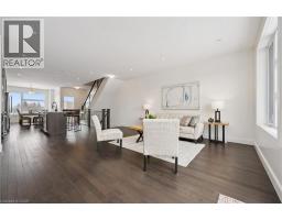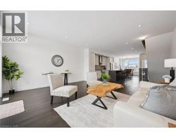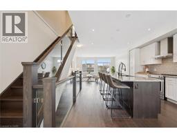 $327 MonthlyUpscale 2286sqft, 3-storey townhome located in award-winning complex in Guelph’s highly sought-after south end! Backing onto greenspace this home boasts one of the best positions in the community offering unobstructed views from the front & rear of the unit. With 3 bdrms, 3 bathrooms & potential for add'l bdrms this home delivers privacy, functionality & lifestyle. Enter main level to bonus room filled W/natural light from large windows & pot lighting. This space easily adapts to your lifestyle & works well as home office, secondary living room, playroom or teen retreat. Follow the chic wood & glass staircase to heart of the home where open-concept main living area truly impresses. Kitchen is designed for everyday living & entertaining W/white cabinetry that extends to the ceiling, S/S appliances, backsplash & contrasting island topped W/stone counters & bar seating. Kitchen flows seamlessly into dining area where large window creates perfect backdrop for family meals. Living room offers rich hardwood, oversized windows & sliding glass door that opens to balcony overlooking treetops. This space is ideal for morning coffee or evening unwinding offering fresh air, privacy & calming connection to nature. 2pc bath completes this level. Upstairs primary bdrm offers W/I closet, large windows & private balcony. Ensuite W/dbl vanity, stone counters & glass-enclosed shower. 2 add'l bdrms & 4pc main bath W/granite counter & shower/tub. Convenient upper-level laundry! W/O bsmt offers endless possibilities to create 4th bdrm, rec room or office. Sliding doors lead to private patio extending the space outdoors. Each level of the home enjoys stunning backdrops of mature trees & protected greenspace. Easy access to 401, UofG bus route, GO Transit stops, trails & highly rated schools. You're surrounded by dining options, groceries, fitness, banks & more. Stone Rd Mall & amenities are a short drive away making this an exceptional location for families, professionals & commuters! (id:61594)