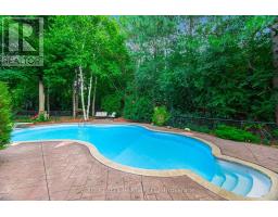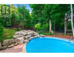 Opportunity to live on the coveted cul-de-sac in White Spruce Estates! Situated on a premium lot, this stunning home backs onto a ravine and fronts onto a large park, offering privacy and views in every direction. The backyard oasis features an inground Solda pool with waterfall, diving board, patterned concrete, and walk-out access for easy entertaining. Inside, enjoy spacious, sun-filled rooms throughout with hardwood floors and elegant finishes. The upgraded kitchen boasts granite countertops, a pantry, and walk-out to the deck. The main floor also offers a bright den/study. All bathrooms and both laundry rooms have been beautifully updated. The primary bedroom includes a 5-piece ensuite, sitting area, and Juliette balcony overlooking the grounds. Three additional bedrooms upstairs are generously sized, each with double closets. The professionally finished basement provides the perfect space for extended family, featuring a gas fireplace, bedroom, office, storage, a second laundry, and a garden door walk-out to the pool and waterfall. Roof Shingles just replaced. Lovingly maintained and move-in ready this rare offering truly has it all. Don't miss the chance to call it home! (id:61594)