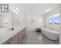 Welcome to this elegantly appointed residence, boasting over $140,000 in premium upgrades. Spacious interiors and timeless sophistication combine to create a home that is as welcoming as it is impressive. Facing a family-friendly park and backing onto a creek with no trail behind, this home offers both tranquility and a rare connection to nature. Step into the bright, open foyer, setting the stage for the refined beauty throughout. It flows seamlessly into a formal living room with gas fireplace and natural light, connecting to an elegant dining room perfect for hosting dinners for eight or more guests. Rich hardwood floors extend across the main level, enhancing warmth and style. The chef's kitchen is the heart of the home, featuring all-new stainless steel appliances, floor-to-ceiling custom cabinetry, and an oversized island with breakfast bar. Patio doors lead to a backyard with interlock paving, a gazebo, and lush greenery, creating seamless indoor-outdoor living. Automatic blinds grace the first floor, with pull-down blinds upstairs. Upstairs, five generously sized bedrooms include a breathtaking primary suite with a four-piece ensuite featuring a Roman soaker tub. A second bedroom offers its own private ensuite, while three additional bedrooms share a well-appointed bathroom. The second level also features a convenient laundry room, with additional connections for flexibility. The fully finished basement adds substantial living space with a recreation room and three-piece bathroom. Structural upgrades include 200AMP service, eavestroughs, and AC purchased with a 10-year warranty. This distinguished residence combines space, elegance, and modern comfort with unmatched attention to detail-truly a home where luxury meets everyday living. Schedule your private viewing today. (id:61594)