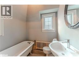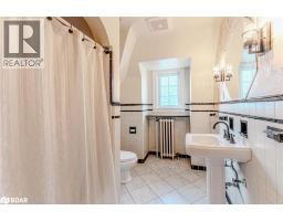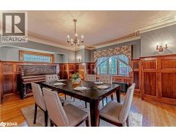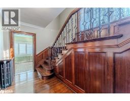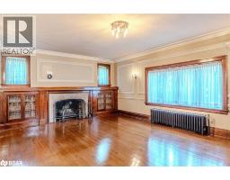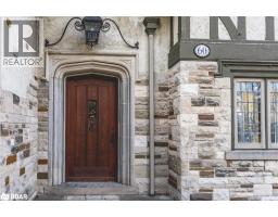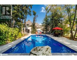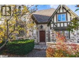LEGENDARY ARCHITECTURE, LUXURIOUS LIVING & UNRIVALED CRAFTSMANSHIP! With unapologetic presence, this stately Tudor landmark commands attention through rich character, architectural detail, and a backyard that feels pulled from the pages of a European estate portfolio. A new heated saltwater pool, servant's quarters transformed into a private suite, Wolf range, butler's pantry, Dolby theatre, and craftsmanship that's nearly impossible to replicate - this is 60 High St, one of Barrie's most iconic homes! Built in 1929 by Shoe Factory owner Ross Underhill and now heritage-designated, it sits near the waterfront, trails, restaurants, shops, GO Transit and more. The 16' x 34' inground saltwater pool features an 8.5 ft deep end, tanning ledge, yoga zone, and OmniLogic control and is surrounded by stone walkways, an irrigation system, mature trees, and a pool shed. The Tudor-arched front door opens to quarter-cut oak flooring, walnut wainscoting, leaded glass doors, plaster crown mouldings, and a grand staircase. The kitchen stuns with quartz counters, glass backsplash, extended cabinets, under-cabinet lighting, and stainless steel appliances, including a Wolf dual fuel gas/electric range and a Sub-Zero side-by-side fridge/freezer. A butler's pantry connects to the formal dining room with a picture window and crest-detailed glass doors. The front parlour includes a decorative fireplace with built-ins and hidden HDMI/data wiring, while the sunroom brings in plenty of light. The primary offers a walk-in closet with automatic lighting and a 4-pc ensuite with original tile, while two additional bedrooms share a well-appointed bathroom. Transformed servant's quarters offer its own staircase, separate bedroom, and 3-pc bath. A partially finished basement includes a Dolby-equipped theatre, storage, and access to the oversized garage. A home of this calibre doesn't just make an impression; it makes history, and it's ready for its next discerning owner to continue the story. (id:61594)