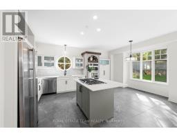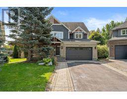Welcome to this exquisite Craftsman-style executive residence, offering over 4,800 finished sq ft on three levels, gracefully positioned on a quiet crescent in prestigious Kanata Lakes. Set on a large corner pie-shaped lot w/timeless curb appeal, a charming covered front porch, & a family-friendly setting just minutes from Beaver Pond trails & top-ranked schools, this home blends classic character w/refined modern updates. The main lvl showcases a tiled foyer w/French drs, a renovated pwdr rm, & elegant LR & DR enhanced by refinished HW flooring, stone accents, & crown moulding. At the heart of the home, the dramatic two-storey FR is framed by a Juliet balcony above & striking WETT-certified wood-burning FP w/floor-to-ceiling stone surround. The updated kitchen offers quartz counters, herringbone backsplash, peninsula w/bar seating & sink, island w/double sink, SS appl, & a bright breakfast area w/access to the landscaped rear yard. A sophisticated main-floor den w/custom wood built-ins & shutters provides the perfect executive office or retreat. The second level presents a true 5-bdrm layout, including a luxurious primary suite w/transom ceiling, WIC, & spa-inspired ensuite w/dbl sinks, soaker tub, & slate shower w/rain head. The renovated main bath completes this floor. The finished LL extends the living space w/a rec rm, dbl-dr flex/gym, private bdrm w/3-pc bath, & a spacious laundry rm. he fully fenced yard features an interlock patio, mature fruit trees, & generous play space. Extensive updates include int painting (2025), patio door replaced (2025), kitchen flooring & cabinetry (2024), main floor bath (2024) ensuite & bath vanity & lighting (2024), exterior paint (2024), & landscaping/driveway (2022), furnace (2021), washer/dryer (2021), A/C (2018), roofing updates by previous owner (2018). Security system is owned. Rare offering combining elegance & location. 24 hrs irrev. on all offers. Some photos virtually staged. (id:61594)