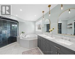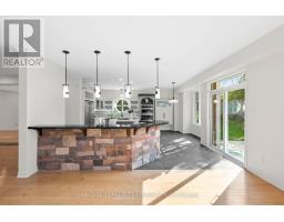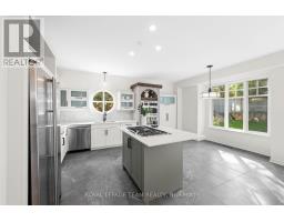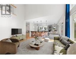 OPEN HOUSE Sun Mar 29, 2-4 PM. Welcome to this exquisite Craftsman-style executive residence, offering over 4,800 finished sq ft on three levels, gracefully positioned on a quiet crescent in prestigious Kanata Lakes. Set on a large corner pie-shaped lot w/timeless curb appeal, a charming covered front porch, & a family friendly setting just minutes from Beaver Pond trails & top-ranked schools, this home blends classic character w/refined modern updates. Main level showcases a tiled foyer w/French drs, a renovated powder room, & elegant LR & DR w/ refinished HW flooring, stone accents, & crown moulding. At the heart of the home, the dramatic two-storey FR is framed by a Juliet balcony above & a striking WETT-certified wood-burning FP w/floor-to-ceiling stone surround. The thoughtfully updated kitchen offers quartz counters, herringbone backsplash, peninsula w/ bar seating & sink, island w/double sink, SS appl, & breakfast area w/access to landscaped backyard. A sophisticated main-floor den w/custom wood built-ins & shutters provides the perfect executive office or retreat. The 2nd level presents a true 5-bdrm layout, including a luxurious primary suite w/transom ceiling, WIC, & spa-inspired ensuite w/dbl sinks, soaker tub & slate shower w/rain head. The renovated main bath completes this floor. The finished LL extends the living space w/a rec rm, dbl-dr flex/gym, private bdrm w/3-pc bath, & a spacious laundry rm. Outdoors, the fully fenced yard features an interlock patio, mature fruit trees, & generous play space. Extensive updates include int painting (2025), patio door replaced (2025), kitchen flooring & cabinetry (2024), main floor bath (2024) ensuite & bath vanity & lighting (2024), exterior paint (2024), & landscaping/driveway (2022), furnace (2021), washer/dryer (2021), A/C (2018), roofing updates by previous owner (2018). Security system is owned. A rare offering combining elegance, warmth & location. 24 hrs irrev. on all offers. Some photos virtually staged. (id:61594)