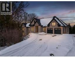 Modern Country Estate Like No Other. “Brand New” breathtaking custom all stone bungalow offering over 6,000 sq. ft. of finished luxury living with a full walkout basement done in 10ft wide & 8ft high glass sliding doors with steel frame and also, separate entrance off garage. Easily could function for multigenerational families, this home features 5 bedrooms, 4 full bathrooms, and a stylish main floor powder room. High tech European steel doors and windows deliver exceptional unmatched security and striking modern design, while floor to ceiling windows each level showcase the south facing, over ¾ acre treed lot. A true escape designed for families who value space, serenity, and sophistication. Enjoy a massive, covered porch with pot lights, a gas line for grilling, and complete privacy—perfect for creating your dream backyard oasis. The grounds offer endless potential for a resort style pool retreat. Impressive foyer w/11 ft ceiling. Large main floor office with custom built-in cabinetry &11 ft ceilings, Great room w/14ft ceiling height. All appliances included. 4 car tandem garage, and 5 car driveway, Security Cameras, Full irrigation system, 2 zone furnace- main & lower-level separate controls. Tankless Hot Water Heater, Water Softener- all equipment owned. All bedrooms with custom built in Shelving. Located minutes from the Grand River and Conestoga Golf Course, and only 10 minutes to Waterloo, this property blends peaceful country living with urban convenience. A rare offering of elegance, privacy, and craftsmanship by the acclaimed Surducan Custom Homes! (id:61594)
