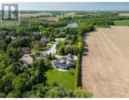 Welcome to the crown jewel in St. John's Estates! Step into over 10,000 total SF of exciting architecture on a premium 2.08 acre lot! Impressive floor plan features foyer/gallery showcasing exotic wood art niches & ceiling detail! Spectacular great room presents impressive living room anchored by floor to ceiling granite fireplace, 15 foot live edge Bubinga wood dining room table, bar & billiards featuring Zebra wood detailing & cherry/maple built-ins. Professional grade luxury gourmet kitchen. Main floor full west wing primary suite with oversized dressing room, double walk-in closets, dual fireplaces, access to front courtyard & back wrap-around covered concrete patio with cedar tongue & groove ceiling overlooking lush grounds and serene woodlands. State of the art gym. Four spacious second floor bedrooms with sitting area, ensuites and built ins. 2nd floor media room with electric black out blinds. Rich Tiger wood flooring. Wirsbo in-floor heating system. Triple car garage with dual 12 ft entry doors & large rear garage door to access sizable concrete pad for additional outdoor activities such as basketball, hockey or loads of additional parking. Just a few minutes drive exceptional restaurants, Masonville Mall shopping, Western University and University Hospital. (id:61594)