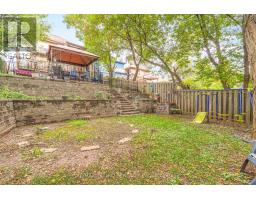 Stunning Home with a Private Backyard! A beautiful 4 bedroom, 2 bathroom solid brick home with a double wide driveway, an awesome backyard for entertaining that's surrounded by mature trees and makes you feel like youre in the country, and sitting in a great neighbourhood that's close to all amenities. This lovely home features a welcoming entrance for greeting your guests, a bright kitchen with modern tile backsplash, an inviting living room with updated flooring and an electric fireplace with a slate surround, a pristine 3pc. bathroom that has modern tiling and a walk-in shower with a glass door, a playroom or den, a convenient main floor laundry, and a separate dining room that has patio doors leading out to the elevated deck that overlooks the very private backyard. Upstairs you'll find a huge master bedroom that boasts a wall-to-wall closet that has sliding doors with frosted glass, a separate room off the master that could be used as a walk-in closet or an office, and there's an immaculate 4pc. bathroom with a deep claw foot tub and attractive tile surround. The full basement offers plenty of storage space and a walk-out to the backyard from under the deck. The deep and very private backyard will be a perfect space for hosting gatherings with family and friends with a gazebo on the patio, separate levels for entertaining, and lots of room for the kids to play. Recent updates include new basement window and side window in 2025, new sliding patio door in 2024, new furnace in 2023, new central air unit in 2014, updated electrical panel, upstairs bathroom renovated in 2023, upgraded lighting fixtures, new shed on the lower level in the backyard in 2023, new black safety fences and arch going down to the lower section of the yard in 2021, lower level patio and gazebo in 2022, and more. A beautiful family home in an excellent neighbourhood that's close to parks, schools, restaurants, shopping, the hospital, and all amenities. Book a private viewing today! (id:61594)
