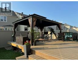 Welcome to 600 Calla Lily Terrace - Nestled in the highly desirable and friendly Summerside community, this single-family 4 bedroom, 4 bathroom home features a charming wrap-around porch and sits on a larger corner lot. Eye-catching curb appeal welcomes you as you pull into the driveway with garage access, leading into a warm and inviting foyer that offers your first glimpse of the functional and thoughtfully designed main floor. California shutters throughout add a polished yet cozy feel to the space. The bright dining room, surrounded by windows, is an ideal setting for hosting family dinners. Passing a convenient partial bathroom, you'll arrive at the heart of the home where the upgraded kitchen truly shines, offering high-end stainless steel appliances, a gas cooktop, built-in wall oven and microwave, quartz countertops, ample cabinetry and prep space, and a large centre island overlooking the breakfast nook and living room with a gas fireplace. From here, step outside to the private fully fenced yard featuring a large composite deck, a 12' x 16' gazebo with netting and curtains, and a resin garden shed for additional storage. Upstairs, you'll find four well-proportioned bedrooms, including the primary retreat with a walk-in closet complete with custom built-ins and a 5-piece ensuite showcasing a double vanity with quartz counters, a glass walk-in shower and deep oversized soaker tub. The second-floor laundry room adds everyday convenience with built-in cabinets and granite countertops. The newly finished basement extends the living space with a versatile family room, a 2-piece bathroom, and plenty of storage. Located close to shopping, transportation, schools, parks, and a full recreation centre, this home offers everything a family could wish for. Come have a look - you won't be disappointed. (id:61594)