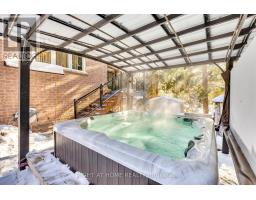Tucked away on an exclusive private street shared by only three homes, 600 Henderson Drive offers a rare sense of seclusion and tranquility surrounded by mature trees and ravine views while still being centrally located in the highly sought-after Aurora Highlands. This extensively renovated 3+1 bedroom, 4 bathroom home is a must see. The main level showcases a stunning chef's kitchen with granite countertops, backsplash, and an impressive 88" x 38" waterfall island, complemented by stainless steel appliances. Engineered hardwood flooring, pot lights, skylights and sun tunnels fill the home with natural light, while a striking two-sided Crema Marfil marble gas fireplace anchors the living space. Walk out from both the living room and primary bedroom to a fully upgraded balcony featuring new flooring, glass railings, wood ceilings, pot lights, and a ceiling fan, all overlooking a private ravine setting. The spa-inspired primary ensuite features travertine tile throughout and a quartz countertop vanity. The fully finished lower level offers a second kitchen with granite counters and stainless steel appliances, a full bath with stand-up shower, a dry sauna accommodating 5-7 people, and a walk-out to an interlock patio. Enjoy your own backyard oasis with landscaped grounds, multiple decks, gas line for BBQ, Hot tub, and serene ravine views. Ideally located close to top-rated schools, trails, shopping, and more. A true showstopper not to be missed. (id:61594)