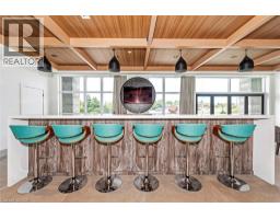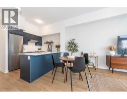 Welcome to your penthouse retreat at COMO Condos in Stoney Creek! This impressive penthouse suite features 9-ft ceilings, a bright open-concept layout, and oversized windows that fill the space with natural light. The modern kitchen is beautifully appointed with quartz counters and backsplash, soft-close cabinetry with gold hardware, an upgraded MOEN faucet and sink, and plenty of counter space for cooking or entertaining. The chic bathroom showcases upgraded tile work, recessed shower lighting, and ceiling tiles above the tub for a spa-like touch. The spacious bedroom with a walk-in closet and motorized roller blinds, provides both comfort and function, while the private balcony offers escarpment views and spectacular sunsets. With vinyl flooring throughout, elegant finishes, and a prime location just minutes to the GO Station, QEW, hiking trails, shops, dining, and Niagara’s renowned wineries, this penthouse combines convenience, sophistication, and lifestyle in one exceptional package. (id:61594)
