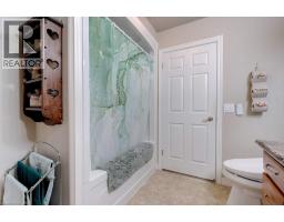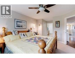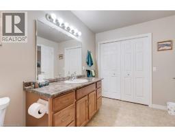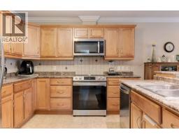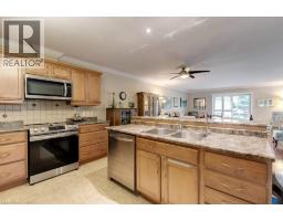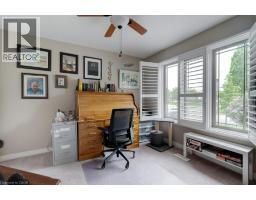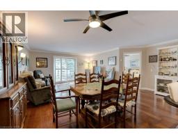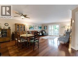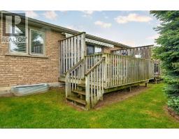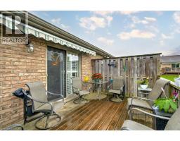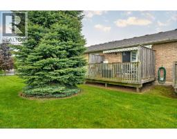 PRICED TO SELL! A Tranquil Bungalow Townhome Backing Onto Greenspace. This lovingly maintained 2+1 bedroom townhome with a den offers effortless, low-maintenance living in a desirable, well-managed condo community. Set within beautifully landscaped grounds, this home invites you to relax and unwind without the hassle of outdoor upkeep. Step inside to a bright, open-concept main floor featuring hardwood floors and California shutters throughout. The open living room leads to a private deck through sliding glass doors complete with a remote-controlled awning, overlooking a peaceful greenbelt and mature trees. It’s the perfect setting for your morning coffee or an evening glass of wine. The stylish kitchen is equipped with stainless steel appliances, including a newer stove and a fridge with built-in ice maker, pot lights with dimmers, a raised breakfast bar with seating, and a handy pantry. Just off the kitchen, the generous dining area easily accommodates a full-size table and hutch for all your entertaining needs. The main floor primary bedroom is impressively sized, with room for a California King bed, two wardrobes, and nightstands. It features dual closets, a ceiling fan, and direct access to a 4-piece semi-ensuite bath. The second bedroom also enjoys great natural light, a ceiling fan and california shutters. A convenient laundry closet on the main floor, houses a brand-new washer. Downstairs, you’ll find a finished basement with an additional bedroom (featuring egress windows), a gas fireplace, and a private den/office with French doors, ideal for guests or working from home. The 3-piece bathroom includes a glass shower enclosure. Additional highlights include ample basement storage, a water softener, reverse osmosis system, and a recently updated furnace and AC. If you're looking for easy living in a quiet, friendly community close to everything Brantford has to offer, this is the one. (id:61594)