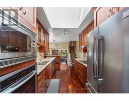 This spacious and thoughtfully designed multi-level backsplit features updates throughout, and is nestled on a quiet executive street backing on the Arbour Ridge Environmentally Protected Area. With nearly 2400 sq ft above grade, this 4 bed, 3 full bath home has space for everything. As you enter the home, the tile foyer and entry closet provide a welcoming transition to Brazilian walnut flooring that flows seamlessly throughout the three above grade levels. The heart of the home is the custom kitchen, featuring a bright skylight, solid wood cabinets with crown to the ceiling, granite countertops with an undermount double sink, and an oversized peninsula with a 39"x80" granite surface and breakfast overhang that is flooded with light from the south-facing patio doors. Stainless steel appliances include a wall oven, convection microwave, fridge, dishwasher, cooktop, and hood fan. The large living and dining areas are ideal for entertaining and are accented by detailed crown moulding. The lower main level boasts a cozy family room with a natural gas fireplace a large bedroom or den with direct access to a 4-pc bathroom, and an well-appointed laundry room with built-in cabinetry, granite countertops, and an undermount stainless steel sink-perfect for functional family living or multi-generational needs. Upstairs, you'll find three bedrooms, including a generous primary suite complete with an updated 5-pcensuite featuring granite countertops, custom cabinetry, double undermount sinks, and a tiled tub surround. A large 4-pc main bathroom with ample counter and storage space and a large linen closet complete the upper level. The finished basement adds even more versatility with a spacious rec room, a cold room, and access to a 5' high crawl space offering excellent storage and utility access. Additional features include a full double garage with direct entry to the home, a 12'x12' deck (fully resurfaced in 2024), a large patio, and towering cedars for added privacy. (id:61594)