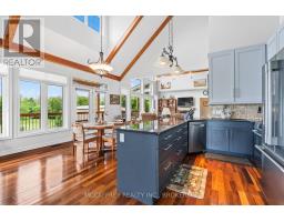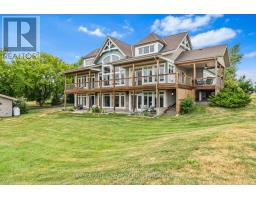 Welcome to your dream home on the shores of Hay Bay! This custom-built two-story masterpiece, constructed in 2012, blends luxury, comfort, and scenic beauty. Set on a 1.72-acre lot with 202 ft of waterfront, it offers unparalleled living. As you arrive, a double wide paved driveway leads to an attached 2-car garage and a distinctive detached 40' x 58' garage, complete with hydro and oversized doors (12'x14' & 12'x12'), ideal for boats, RVs, or a workshop. Inside, the main level impresses with 28 ft high cathedral ceilings adorned with BC Fir wood beams. Expansive windows illuminate interiors and offer picturesque views of the landscaped backyard and sparkling waters. This level includes a cozy living room with a gas fireplace, an office/den, and a gourmet kitchen with granite countertops, oak cabinetry, and a breakfast bar. The dining room and easy deck access enhance indoor-outdoor living, as well as entrances from the laundry room, and connections to the garage. Two spacious bedrooms, one with deck access, plus a 3 pc and a 4 pc bath, complete this level. Ascend the beautiful wooden staircase to discover the private sanctuary of the Primary suite. Here, you'll find a spacious bedroom complemented by two walk-in closets and a 4 pc ensuite, providing the ultimate retreat. The finished lower level enhances the home's entertainment and storage capabilities. The rec room features a wet bar, 2 pc bath, cold cellar, substantial storage room, and a utility room. Additionally, a semi-finished bedroom with walk-out offers flexibility for your needs. The outdoor space is nothing short of spectacular, with meticulously designed flower gardens and a 10'x24' floating dock invites you to embrace the waterfront lifestyle. Located just minutes from downtown Napanee, this home provides the perfect combination of convenient access to amenities and the privacy and tranquility of waterfront living. (id:61594)