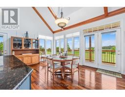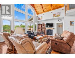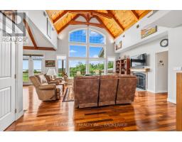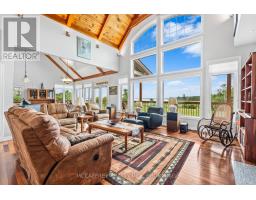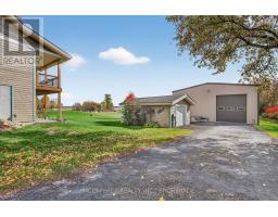 Welcome to your dream home on the shores of Hay Bay! This custom-built two-story masterpiece, constructed in 2012, blends luxury, comfort, and scenic beauty. Set on a 1.72-acre lot with 202 ft of waterfront, it offers unparalleled living. As you arrive, a double wide paved driveway leads to an attached 2-car garage and a distinctive detached 40' x 58' garage, complete with hydro and oversized doors (12'x14' & 12'x12'), ideal for boats, RVs, or a workshop. Inside, the main level impresses with 28 ft high cathedral ceilings adorned with BC Fir wood beams. Expansive windows illuminate interiors and offer picturesque views of the landscaped backyard and sparkling waters. This level includes a cozy living room with a gas fireplace, an office/den, and a gourmet kitchen with granite countertops, oak cabinetry, and a breakfast bar. The dining room and easy deck access enhance indoor-outdoor living, as well as entrances from the laundry room, and connections to the garage. Two spacious bedrooms, one with deck access, plus a 3 pc and a 4 pc bath, complete this level. Ascend the beautiful wooden staircase to discover the private sanctuary of the Primary suite. Here, you'll find a spacious bedroom complemented by two walk-in closets and a 4 pc ensuite, providing the ultimate retreat. The finished lower level enhances the home's entertainment and storage capabilities. The rec room features a wet bar, 2 pc bath, cold cellar, substantial storage room, and a utility room. Additionally, a semi-finished bedroom with walk-out offers flexibility for your needs. The outdoor space is nothing short of spectacular, with meticulously designed flower gardens and a 10'x24' floating dock invites you to embrace the waterfront lifestyle. Located just minutes from downtown Napanee, this home provides the perfect combination of convenient access to amenities and the privacy and tranquility of waterfront living. (id:61594)