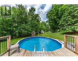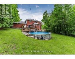 Jump on in to your own private backyard pool surrounded by green space, complete with a full custom wraparound deck and entertaining area! This incredible home is situated on one of the best lots in the entire neighborhood. Backing and siding onto the Simcoe County Forest, you and your family are surrounded by peace, quiet and tranquility. Enjoy spending time with your family and friends entertaining in your sprawling and private back and front yard, complete with an above ground pool and integrated deck with gas fireplace and seating area, and children's playground. Step inside to a large well laid out floor plan, with a main floor office space, formal dining room, eat in kitchen with breakfast area overlooking the backyard, and sunken living room with walkout to your private deck. Upstairs you're greeted with 4 large bedrooms, the primary suite having a full 5 piece ensuite bath. Each bedroom has a generous sized closet and window that allows lots of natural light. The roof has 2 skylights installed for even more natural light to enter the home. The basement is completely finished, with a walkout, a kitchen, and a separate bedroom for income potential, or an in-law suite. Garage complete with workshop area for the man of the house! This home truly checks all the boxes. This is the home you can enjoy with your entire family and friends. Imagine all the memories you can make with your family running around and playing on this property. See Wildlife from your home. Deer can be seen from your bedroom windows! Neighbours nearby sell fresh eggs, meats, fruits vegetables and flowers, from farm to table! Total above ground square footage is 2546 plus the finished walkout basement. (id:61594)