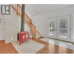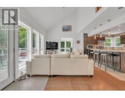 Discover this charming Viceroy-built home featuring 4 bedrooms and 2 bathrooms, peacefully situated on a stunning 58-acre property. Surrounded by mature hardwoods, scenic trails, vibrant wildflowers, and rolling hills, this property offers an ideal setting for outdoor enthusiasts. Just minutes away from Moonstone Ski Hills, golf courses, and the beautiful beaches of Victoria Harbour, enjoy an active, year-round lifestyle. Step inside the main level and be greeted by expansive windows showcasing the forest views, soaring vaulted ceilings, and an open-concept layout. The living and dining areas boast hardwood flooring, a cozy wood-burning stove, and French doors opening onto the rear deck, perfect for entertaining. The spacious kitchen features ample storage, a large island, and granite countertops. The sunroom, with heated porcelain floors, an electric fireplace, and new windows overlooking the woods, provides a serene retreat. Conveniently located on the main level the primary bedroom includes a private bonus room ideal as an office, dressing room, nursery, or easily converted into an ensuite bath. Upstairs, you'll find three additional bedrooms served by a full 4-piece bath, all with rich hardwood floors and a welcoming foyer open to below. The lower level offers a separate entrance and is waiting to be transformed into your perfect space. An oversized extended garage provides ample room for two cars and additional storage. Additional features include; main floor laundry, central vac rough-in, wrap-around deck with three entry's, storage/wood shed. With new windows and exterior siding, this move-in-ready home combines charm and functionality in a picturesque setting. Don't miss your opportunity to own this exceptional property! (Current owners benefitting with reduced property taxes under the "Conservation Land Tax Incentive Program") (id:61594)