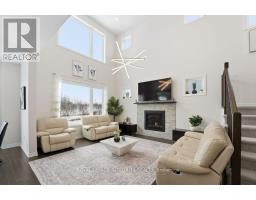 Welcome to 605 Enclave Lane, an extensively upgraded executive home on a premium lot backing onto a tranquil pond and scenic walking trail, offering exceptional privacy with no rear neighbours. This nearly new, move-in ready home blends luxury finishes with smart home functionality. The chef inspired kitchen features custom white cabinetry, HanStone quartz countertops with waterfall island, built-in cooktop, wall oven, microwave, and a sleek stainless steel hood fan. The open-concept living space impresses with soaring 18 foot ceilings, expansive windows, pot lighting throughout, and a striking raised fireplace with custom tile surround, creating a bright and inviting atmosphere. Upstairs, the primary suite offers a spa like ensuite with glass shower, double vanity with Caesarstone countertops, and upgraded fixtures. The other bedrooms are generously sized, complemented by a full bathroom, convenient laundry room, and a huge versatile loft, perfect for a home office or additional living space. The fully finished walkout basement provides excellent flexibility with a large bedroom, full bathroom, rec room, and electric fireplace, ideal for an in-law suite or income potential. Enjoy a fully fenced backyard with direct access to nature. Notable upgrades include 200-amp service, Tesla EV charger, Lutron smart switches, Nest thermostat, and a finished garage with smart opener and camera. A rare opportunity to own a modern, smart enabled home in a premium location. Book your private showing today. (id:61594)