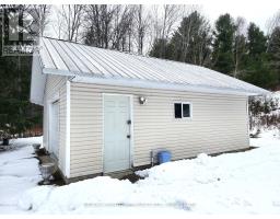 Denbigh is the place you want to be if you're hankering for an off the beaten path hunt camp or a four season off water cottage/home. Located on a township maintained road, this older mobile home is set back from the road and features a primary bedroom (propane stove), utility room or second bedroom, four piece bathroom, kitchen/living room (second propane stove); sitting room addition and enclosed front mudroom. There is also a functioning septic system (2018), drilled well and an excellent newer 20' x 24'8' garage with a concrete floor and metal roofing. There is substantial Crown Land in this neck of the woods along with ponds and lakes including easily publicly accessible Denbigh Lake at the corner of Bridge St. and Hwy 41. This is fun on a budget in the Land O'Lakes Tourist Region! (id:61594)