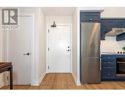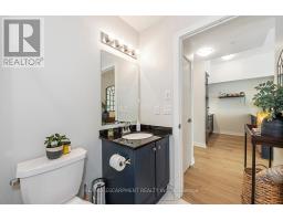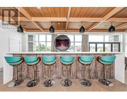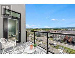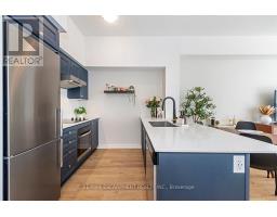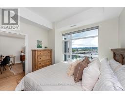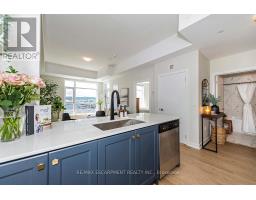 Welcome to your penthouse retreat at COMO Condos in Stoney Creek! This impressive penthouse suite features 9-ft ceilings, a bright open-concept layout, and oversized windows that fill the space with natural light. The modern kitchen is beautifully appointed with quartz counters and backsplash, soft-close cabinetry with gold hardware, an upgraded MOEN faucet and sink, and plenty of counter space for cooking or entertaining. The chic bathroom showcases upgraded tile work, recessed shower lighting, and ceiling tiles above the tub for a spa-like touch. The spacious bedroom with a walk-in closet and motorized roller blinds, provides both comfort and function, while the private balcony offers escarpment views and spectacular sunsets. With vinyl flooring throughout, elegant finishes, and a prime location just minutes to the GO Station, QEW, hiking trails, shops, dining, and Niagara's renowned wineries, this penthouse combines convenience, sophistication, and lifestyle in one exceptional package. (id:61594)