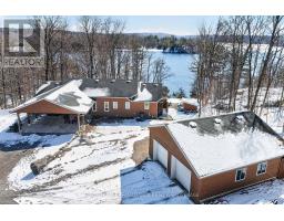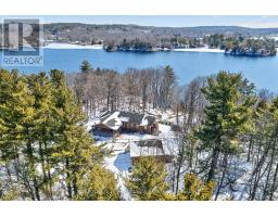 Private waterfront estate on Whitefish Lake - over 12 acres of unmatched serenity. Welcome to an extraordinary lakeside retreat offering total privacy and breathtaking natural beauty. Set on 12 acres of mature hardwood bush with an impressive 1,700 feet of pristine shoreline, this one-of-a-kind property delivers the ultimate waterfront lifestyle. Perched in an elevated position, the custom-built bungalow captures panoramic views of Whitefish Lake, with a gentle slope leading you down to the water's edge. Here, you will find the perfect combination of deep, clean waterfront and a rare sandy beach, ideal for swimming, boating, and relaxing in total seclusion. Inside, the home is designed to impress. A stunning cathedral ceiling crowns the open-concept living space, where expansive windows flood the interior with natural light and frame the spectacular lake views. The layout offers both comfort and functionality, featuring three spacious bedrooms and 2.5 bathrooms, perfect for family living or hosting guests. The fully finished walkout basement extends your living space and provides seamless access to the outdoors-ideal for entertaining or enjoying quiet evenings surrounded by nature. Additional features include a detached two-car garage, on-demand backup generator for peace of mind, gently sloping terrain providing easy access to the waterfront and absolute privacy in a tranquil, natural setting. This is a rare opportunity to own a legacy property on Whitefish Lake-where luxury, nature, and privacy come together in perfect harmony. (id:61594)