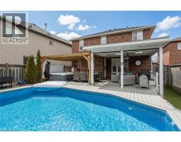 Welcome to this beautiful 3,203 sq ft family home, tucked away in a rare South Burlington court location with a pool, blending everyday convenience with an exceptional lifestyle opportunity. Nestled in the sought-after Maple community, just minutes from the lake, downtown, shopping, dining, and amenities, with easy highway access and walkable parks and trails, this is a location families love for both daily routines and weekend adventures. Curb appeal shines with an aggregate walkway, mature trees, and lush perennial gardens that create a warm first impression. Inside, the main floor features light wide-plank hardwood (2021) and a thoughtful layout designed for family living and entertaining. The spacious living and dining rooms are filled with natural light and accented by elegant crown moulding and French doors. A stylish 2-piece powder room with slab tile wainscoting adds a polished touch. At the heart of the home, the inviting family room with gas fireplace flows seamlessly into the eat-in kitchen, complete with quartz countertops, tile backsplash, stainless steel appliances, and a walkout to the backyard. Upstairs, the generous primary suite offers a walk-in closet and a private 4-piece ensuite with jetted tub. Three additional bedrooms provide flexibility for growing families, including one with a charming custom window seat and built-in storage, and another with ensuite privileges to the main bath. The fully finished lower level extends the living space with a large rec room, bar area, and additional 2-piece bathroom—perfect for movie nights, teens, or hosting guests. Step outside to a backyard oasis built for making memories. Fully fenced and ideal for entertaining, it features a heated on-ground saltwater pool with composite deck, a pergola-covered deck with skylights, ceiling fan, seating area, and hot tub, plus green space for kids and pets to play. This home offers peak family living potential. (id:61594)