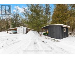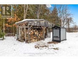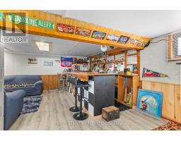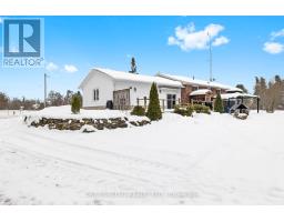 Set on just over 2 acres and minutes from Balsam Lake, this 3-bedroom, 1-bath bungalow offers space, thoughtful updates, and authentic country charm. The modern eat-in kitchen features crown moldings and stylish finishes, while laminate flooring throughout provides warmth and low-maintenance living. The inviting living room suits everyday life, and the finished lower level delivers a spacious rec room that functions as a true man cave, complete with a fish-tank bar setup and a fully stocked wood stove for winter, creating a warm and comfortable space for relaxing or entertaining year-round. Practical features include a dedicated laundry area, utility room, attached single-car garage, and two sheds, one powered, ideal for storage or workshop use. Recent updates include windows, doors, and a 200-amp breaker panel. Enjoy privacy on a tree-lined lot just minutes from a boat launch, making this property well suited for outdoor enthusiasts, gardeners, or those looking to grow their own crops. With highway exposure and potential for a secondary entrance from the adjoining roadway, subject to COKL approval, this property offers both convenience and opportunity. Country living with room to breathe-come make it yours. (id:61594)