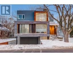 An exceptional contemporary residence in the heart of Westboro, offering over 4,400 square feet of architectural intention and elevated comfort across three levels. Custom built and professionally designed, with an exemplary standard of craftsmanship throughout, every element has been carefully considered. Clean lines, generous scale, and carefully selected finishes define the interior, beginning with a light-filled main level framed by 10-foot ceilings, oversized porcelain tile floors and floor to ceiling windows illuminating the marble encased floating staircase. The linear gas fireplace subtly delineates the living and dining areas while also serving as a sculptural centrepiece. Custom millwork forms a bespoke library wall introducing depth and architectural interest to the main living space. The kitchen is a statement in contemporary design and performance, featuring custom European-inspired cabinetry, integrated professional-grade appliances, an expanded island, and a thoughtfully curated coffee and beverage station. Clean sight lines, concealed hardware, and seamless storage solutions reinforce the home's tailored, minimalist aesthetic. The primary suite offers a quiet retreat with custom walnut built-ins and a five-piece ensuite that includes a skylight, curbless glass shower with wet and dry zones, and an extended floating double vanity. Secondary bedrooms are well proportioned, and a home office with private balcony provides flexible space for work or study. The lower level is designed for everyday use and flexibility, offering a versatile recreation area, ideal for fitness enthusiasts, a full bathroom, and a well-organized laundry room with built-in storage and folding surfaces. A custom mudroom with integrated cubbies provides direct access to the oversized heated garage, reinforcing a practical and well-resolved layout. Located just steps from river pathways, cafes, and boutiques in one of Ottawa's most walkable neighbourhoods. (id:61594)