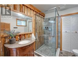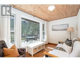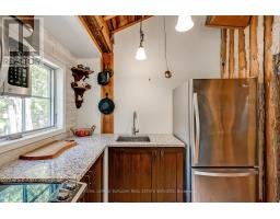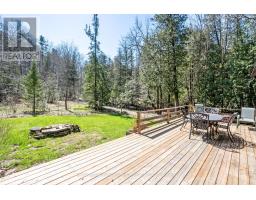 Nestled within the sought-after Cedar Springs Community Club, this charming 3 bedroom plus den, seasonal recreational rustic log cottage, offers the perfect blend of nature, comfort, and vibrant community living. Set on a beautifully treed lot at the end of a court with a peaceful creek backdrop, this seasonal retreat invites you to unwind and enjoy cottage life at its finest without the long drive and bumper to bumper traffic. A flagstone pathway leads to the inviting double wood entry, opening into a vaulted foyer with wide plank floors and classic log and wood finishes throughout. The open-concept living and dining area is centered around a stunning floor-to-ceiling stone wood-burning fireplace, creating a warm and welcoming space for gatherings. Skylights and vaulted ceilings enhance the bright, airy feel, while the updated kitchen features granite countertops, stainless steel appliances, and charming open shelving. Three + versatile bedrooms, including a loft-style retreat, provide plenty of space for family and guests. The updated bath blends rustic character with modern touches. Step outside to the expansive deck and take in serene views of the creek and surrounding nature, perfect for relaxing or entertaining. Enjoy a true resort like lifestyle with access to a private beach, a 9 hole golf course, pickleball court, red clay tennis court, sports field, playground, and a vibrant calendar of community events. With direct access to the Bruce Trail, outdoor enthusiasts will love the endless hiking opportunities and high-speed internet availability makes it easy to stay connected if needed. The shed offers excellent potential to be converted into a bunkie subject to approval. Skip Muskoka, this is effortless summer living at its finest, right where convenience meets lifestyle. (id:61594)